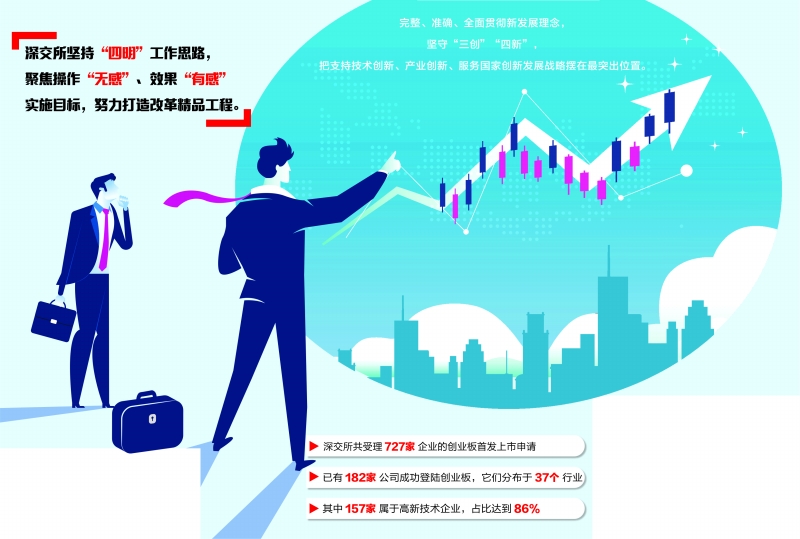 “创业板注册制运行一年以来,板块建设呈现积极向好态势,创新创业企业上市通道进一步拓宽,板块吸引力持续提升,再融资市场蓬勃发展,直接融资比重大幅增加,常态化退市机制平稳落地,制度有效性得到充分检验,市场各方获得感明显,为推动新经济发展、服务双创企业成长注入新动能。”深交所相关负责人表示。