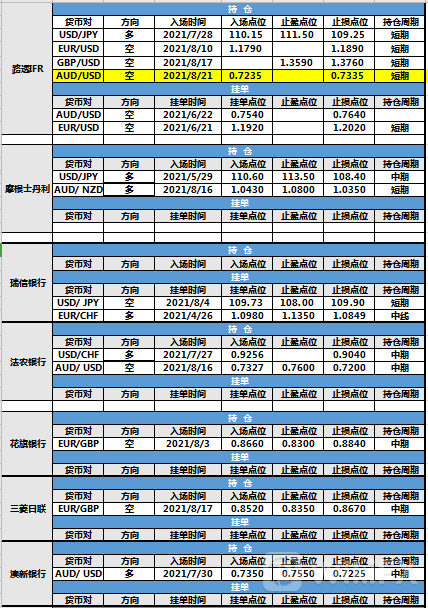 持仓方面,路透IFR澳元兑美元仓位调整,入场点位调整至0.7235,止损点位调整至0.7335,目前处于持仓中。