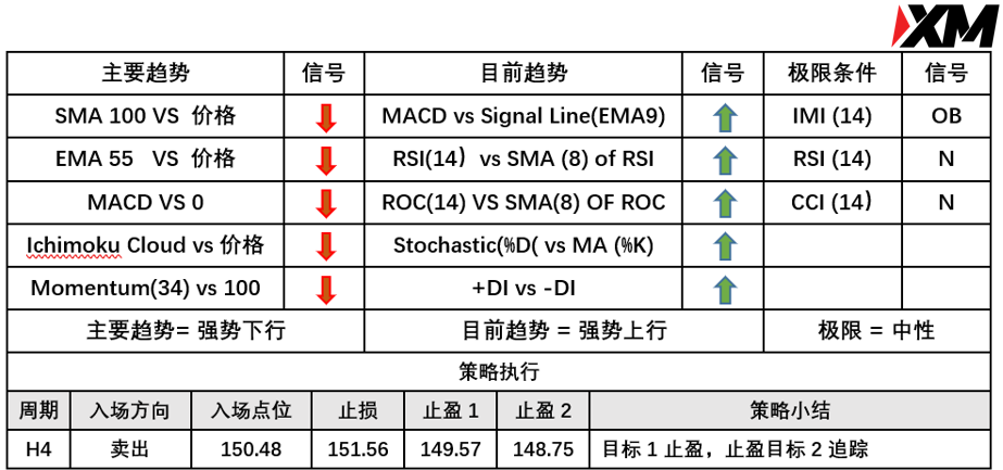 入场价位:150.48,止损价位:151.56,止盈目标一:149.57,止盈目标二: 148.75。
