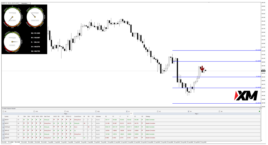 Avramis 是一款全智能根据系统条件实时自动筛选交易信号的交易系统,让交易者随时随地只要在电脑前打开交易软件,利用自动计算筛选功能在自己偏好的交易品种上扫描交易信号,周期为M15 H1 H4 D1 W1 MN(可自定义)。