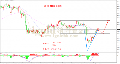 领峰贵金属8月18日评论指出,就从技术面分析,黄金涨势非常流畅,其最近的高点和低点逐渐呈现抬高的走势,这是多头趋势的特征。