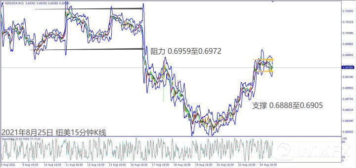 美国两党对预算和基建法案的路径达成共识,今天(25日)早上美元指数重回93关口,有机会见到美元重回多方涨势。若欧美公布经济数据后,美元指数仍守稳93关口,有机会见到市场买盘回补美元,并且挑战93.30。早上新西兰公布7月贸易帐大幅下滑,可能造成纽元转跌。