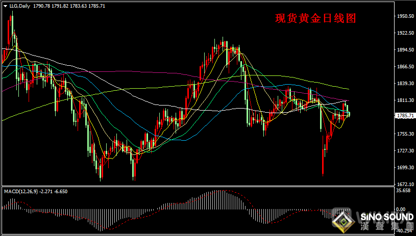 今日亚市现货黄金开盘在1790.78美元/盎司,早盘金价最高在1791.82美元/盎司,亚市和欧市初盘金价振荡回落,金价最低至1783.63美元/盎司,截稿前金价在1785附近振荡整理。