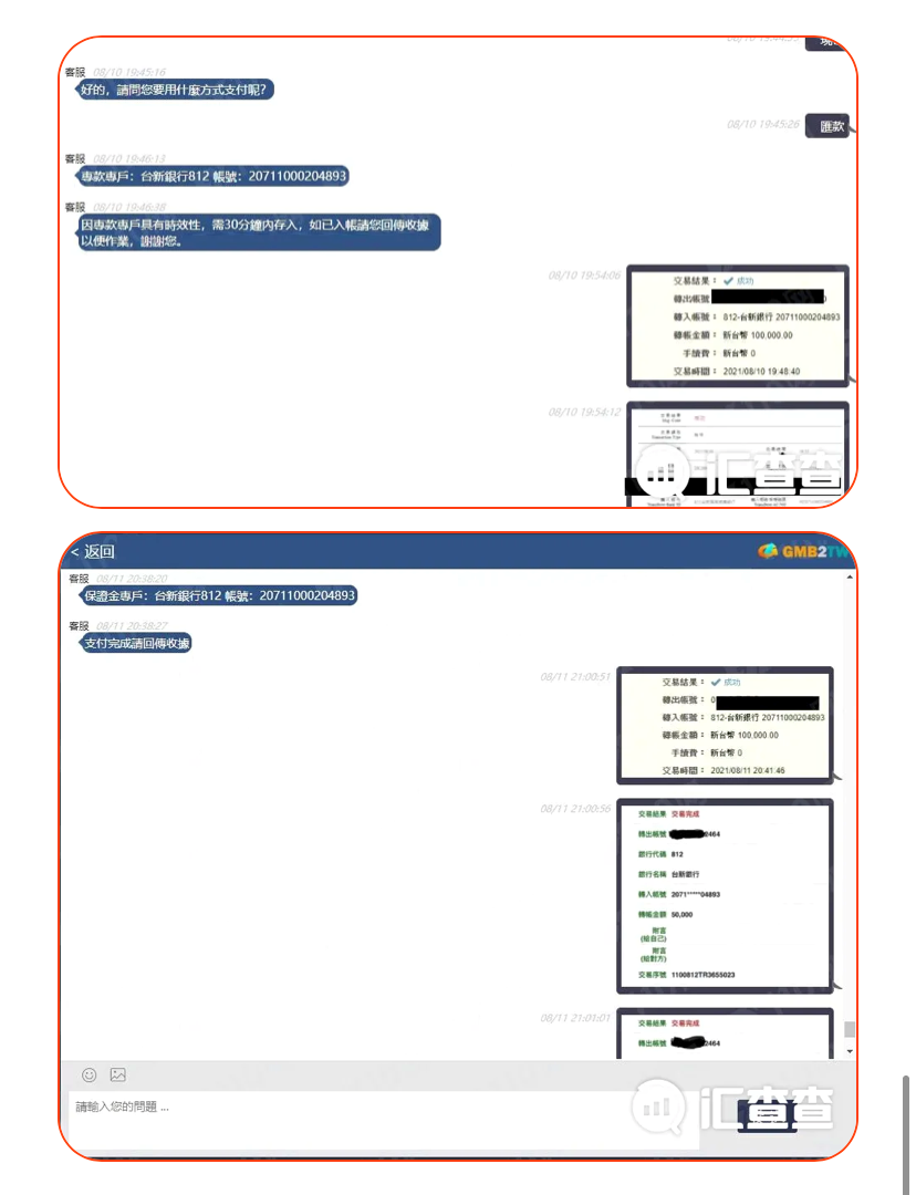 童先生陆续将资金汇入到平台客服所指定的银行帐户,他的网络朋友也在7月10日将资金汇入,资金到位后跟团队助理确认约带单操作时间。