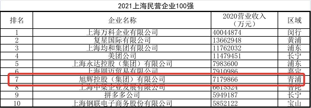 8月26日,2021上海百强企业发布会顺利召开,会上发布了2021上海企业100强、2021上海民营企业100强等多项榜单。凭借稳健经营、均衡发展以及不俗的企业综合实力,旭辉集团以718亿元的营业收入位列2021年上海民营企业百强榜第7位、2021上海企业百强榜第28位、2021年上海民营服务业企业百强榜第6位,以及2021上海服务业企业百强榜第18位,上榜四大榜单。