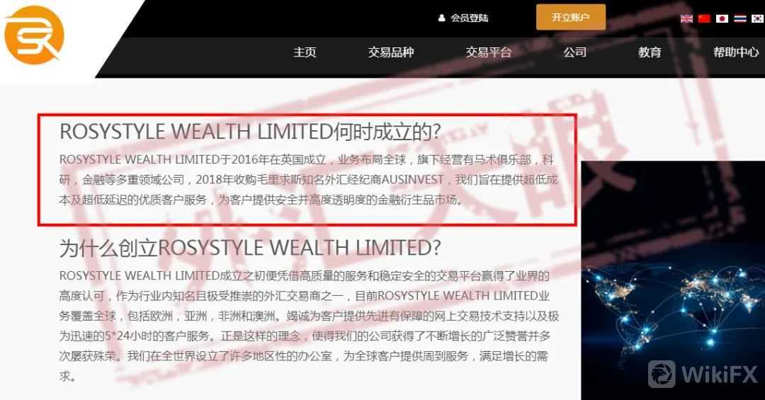 ROSYSTYLE WEALTH在官网称自己成立于2016年,并且在2018年收购了外汇经纪商AUSINVEST,好巧不巧隔壁跑路的Horseforex马汇也是这样介绍自己的公司的,如出一辙的宣传文案,是批发的吗?