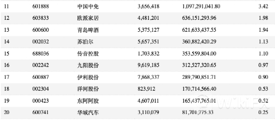此外,思源电气、三七互娱、宝钢股份、巨星科技、三一重工、伟明环保、仙鹤股份等也位列基金前20大重仓股,基金持股市值占基金净值比例超过1.5%。