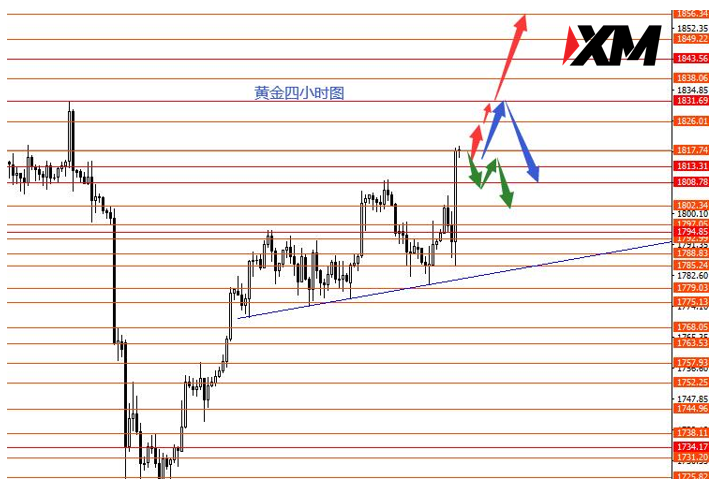 黄金上周直接上破1795后到达1808承压向下,周四正如预期回踩1785向上测试1817,周图收阳柱。从图形来看,后市黄金继续向上测试1856和1866的概率相对较大些,但不确定是直接上行还是在1831没成功上破前向下回调后再向上运行。月末报价到达1817区域后短线不太好操作了,短期和中线趋势都看涨没错,但短线的建仓价不好找了,目前这个区域什么可能性都有,所以建议短线可以放一放,观望一下,下月初再出月分析。
