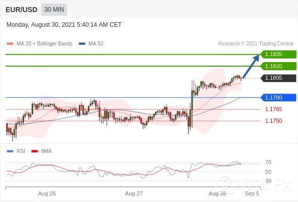 交易策略:在1.1780之上,看涨,目标价位为1.1820,然后为1.1835。