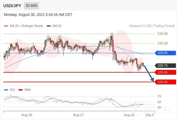 交易策略:在109.95之下,看跌,目标价位为109.65,然后为109.50。