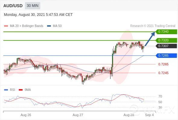 交易策略:在0.7285之上,看涨,目标价位为0.7320,然后为0.7340。