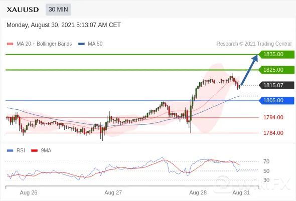 交易策略:在1805.00之上,看涨,目标价位为1825.00,然后为1835.00。