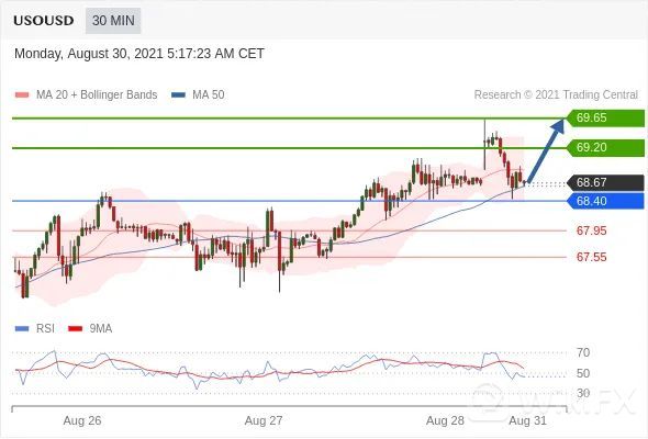 交易策略:在68.40之上,看涨,目标价位为69.20,然后为69.65。