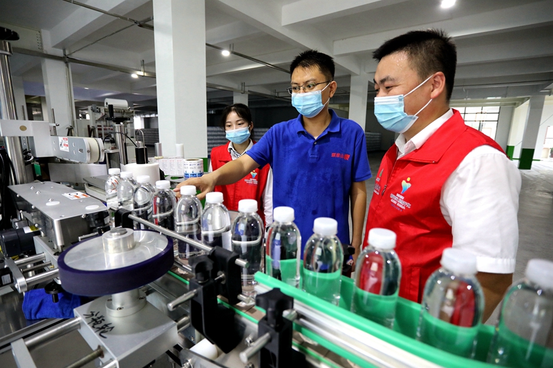 浙江农信辖内开化农商银行主动上门问需,及时为南华山山泉有限公司生产线建设开通贷款服务绿色通道,向企业发放贷款590万元,解了企业采购生产设备之急。目前,企业生产线已建成投产,其所生产的天然水年产值可达1.2亿元至1.4亿元。图为该行客户经理在企业做贷后检查。