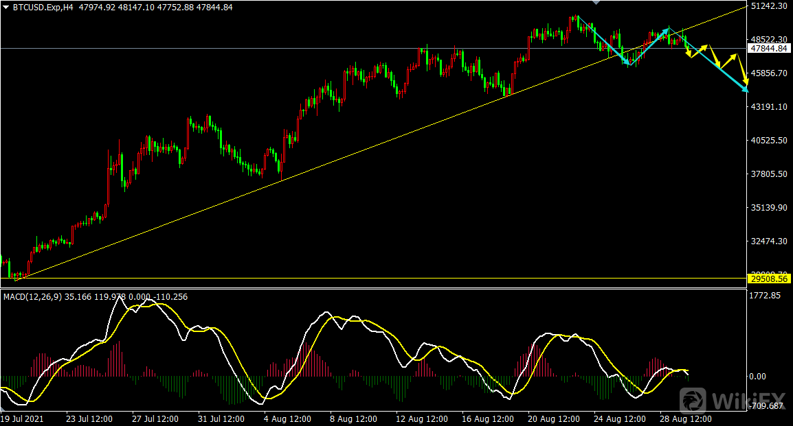 从比特币4小时图来看,比特币四小时级别相对应的破位调整可能会持续很很长时间,目前还远远不够,如果是快速形成ABC调整的话,则整个调整形态将会复杂,目前所看到的调整只是其中一部分。