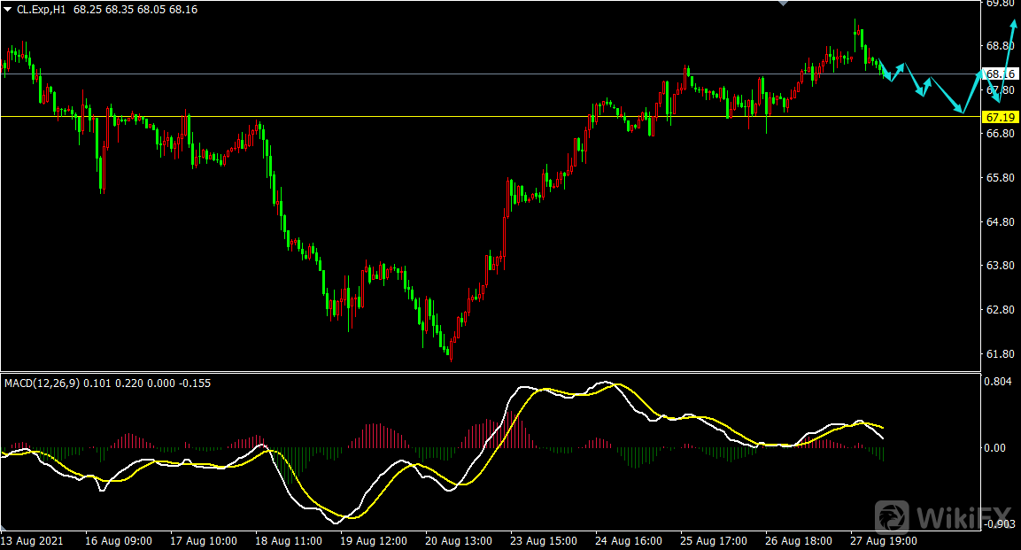 从WTI原油1小时图来看,原油早盘高开后一直在走低,短线极不利于多头,在上周调整较少的情况下出现的拉升未能持续多头,极可能目前仍是横盘调整之中。