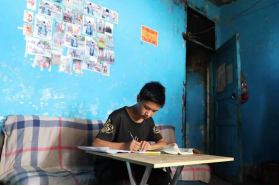 14岁的的拉古看起来比同龄的孩子瘦弱,交谈时声音也很小,有些自卑但却很有礼貌。这是一个令全体志愿者心酸和感动的孩子,生活给予他贫穷和困顿,但他没有放弃学习和努力,像极了黑暗罅隙里的一根藤,倔强地向着光明的地方生长。
