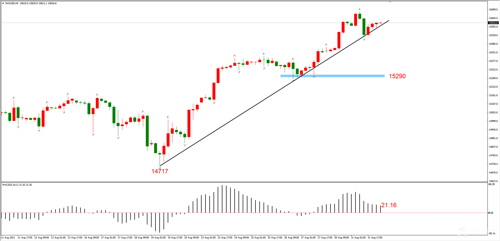 美联储计划年内缩减每月购债,对纳指形成利空压制;但由于上市公司中报业绩相对较好,且市场做多的惯性存在,加息预期对纳指的利空作用受到削弱;中国对互联网概念股的反垄断政策打压,对纳斯达克指数的影响较小。