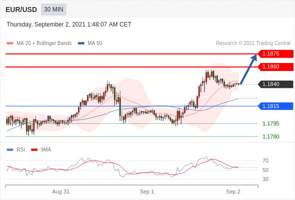 交易策略:在1.1815之上,看涨,目标价位为1.1860,然后为1.1875。