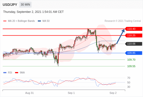 交易策略:在109.85之上,看涨,目标价位为110.25,然后为110.40。