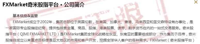 不仅如此,从FAMraket奇米股指背后的公司QIMI FXMARKET LTD.就可以看出,真的谎话连篇,首先奇米称自己的集团总部位于英国伦敦,且成立于2002年。