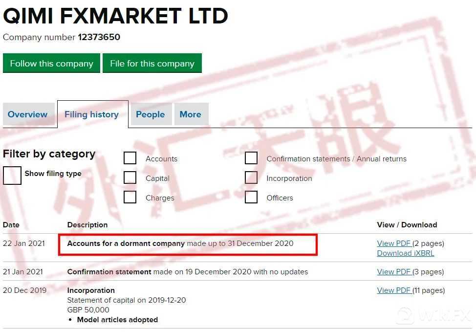 还有个意外的惊喜,“dormant”是指休眠的意思,而QIMI FXMARKET LTD.在此之前一直处于休眠的状态,如果是一个正常运转的总公司又如何会处于休眠状态,还不是只是一个空壳!