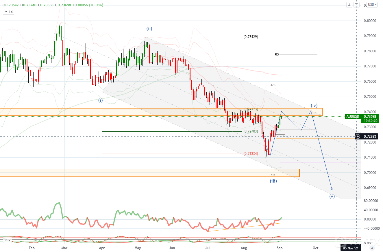 支撑在 21 日均线 0.7298,前方买盘关注 0.7330/40