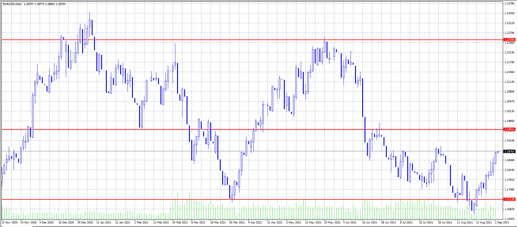 在今天的非农就业数据公布前美元仍处于疲软,数据方面,预计美国8月将增加75万个新工作岗位,而失业率预计为5.2%,好于前值5.4%。欧元/美元延续上涨至一个月以来高位1.1873。尽管美国数据未能给人留下深刻印象,但美国时段风险偏好有所改善。此外,美股维持积极倾向,而美债收益率逆转早盘跌势。