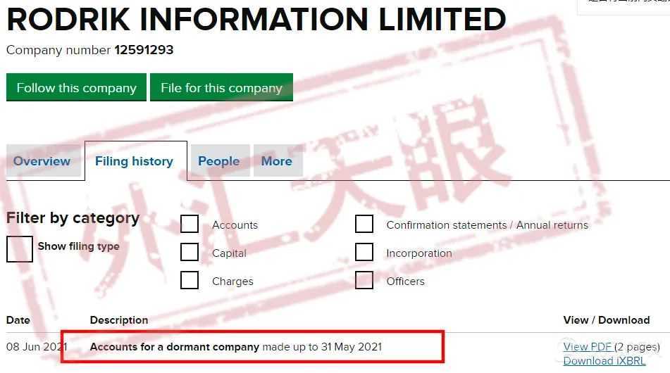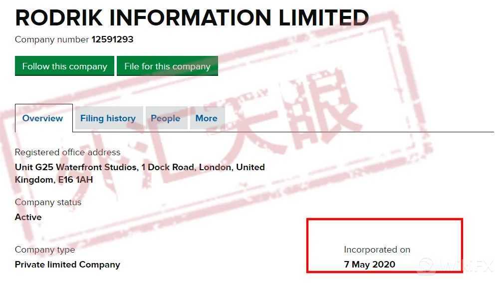 Rodrik全名为RODRIK INFORMATION LIMITED,注册于英国,通过英国官网查询,的确存在但是注册时间为2020年的5月,与平台网站一样的日期建立。