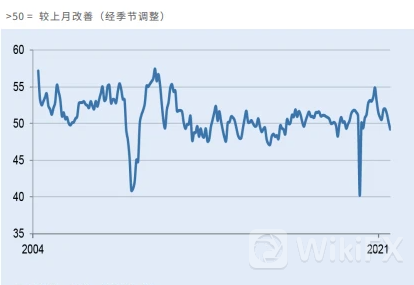 9月1日公布的2021年8月财新中国制造业采购经理指数(PMI)下降1.1个百分点至49.2,自2020年5月以来首次落入收缩区间。(见图8)