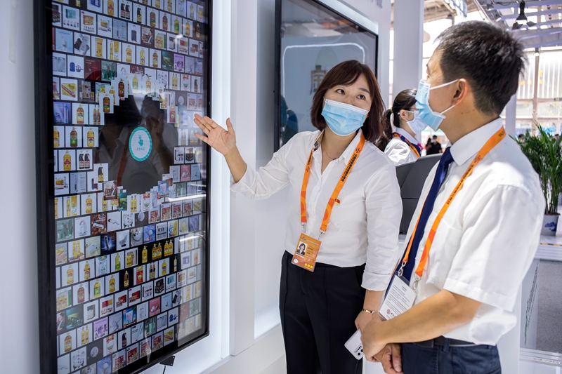 在北京首钢园举办的2021年中国国际服务贸易交易会金融服务专题展上,邮储银行北京分行以“邮储食堂”为着力点,探索生态场景,积极发展线上服务。观众通过互动体验屏,可现场体验通过“邮储食堂”进行购物。据了解,截至6月末,“邮储食堂”全国会员规模超过1200万。