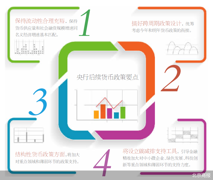 “同时,搞好跨周期政策设计,统筹考虑今年和明年货币政策的衔接。同时,我们在货币政策考虑上以我为主,增强货币政策的自主性。在结构性货币政策方面,将加大对重点领域和薄弱环节的政策支持。”潘功胜指出。比如,再贷款再贴现等工具的定向支持作用,两项直达实体经济的货币政策工具进一步使用,用好国务院常务会议提出的新增3000亿元支小再贷款额度;此外,央行将设立碳减排支持工具,引导金融精准加大对中小微企业、绿色发展、科技创新等重点领域和薄弱环节的支持力度。