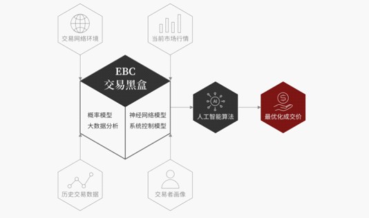 EBC交易黑盒,基于数千万次的历史交易数据、交易者的交易习惯、用户属性、当前的市场行情和交易网络环境等,使用大数据统计分析、概率模型、神经网络模型、系统控制理论模型和人工智能算法等进行综合研判,最终匹配更适合每位交易者属性的LP,达成最优的成交价格。有实验证明:在价格优化率、订单成交率以及算法稳定性方面,EBC交易黑盒远远优于传统交易系统,让85%以上的订单成交于更优的价格。