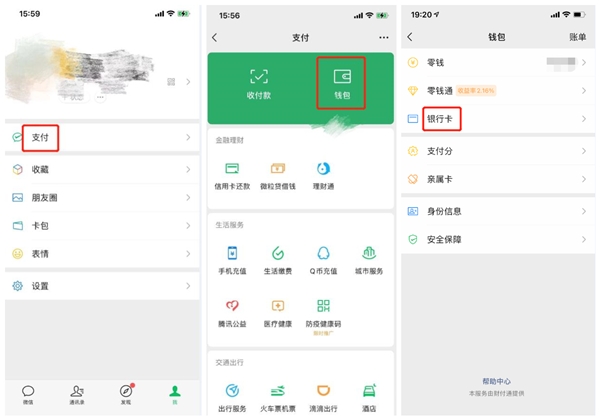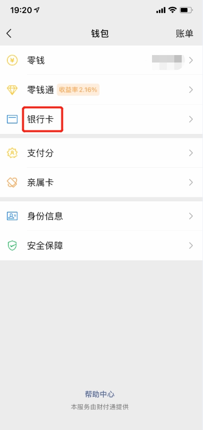 第一步:在微信中依次点击右下角【我】→【支付】→【钱包】→【银行卡】,点击银行卡列表,查看是否已绑定成功;