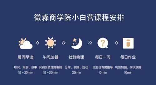为了更好的让大家学习到理财知识,微淼商学院推出《小白训练营》、《理财必修课》、《理财进阶课》等课程,利用专业的课程设计,在每一个环节都替用户考虑到学习的价值,帮助想学习理财的人树立正确的财富观,增强金融投资风险的防范意识,用专业帮助用户走好理财的每一步。