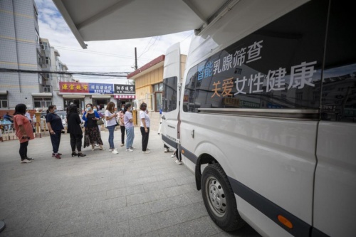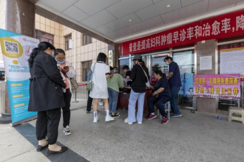 当地适龄妇女在乳腺癌公益筛查现场排队