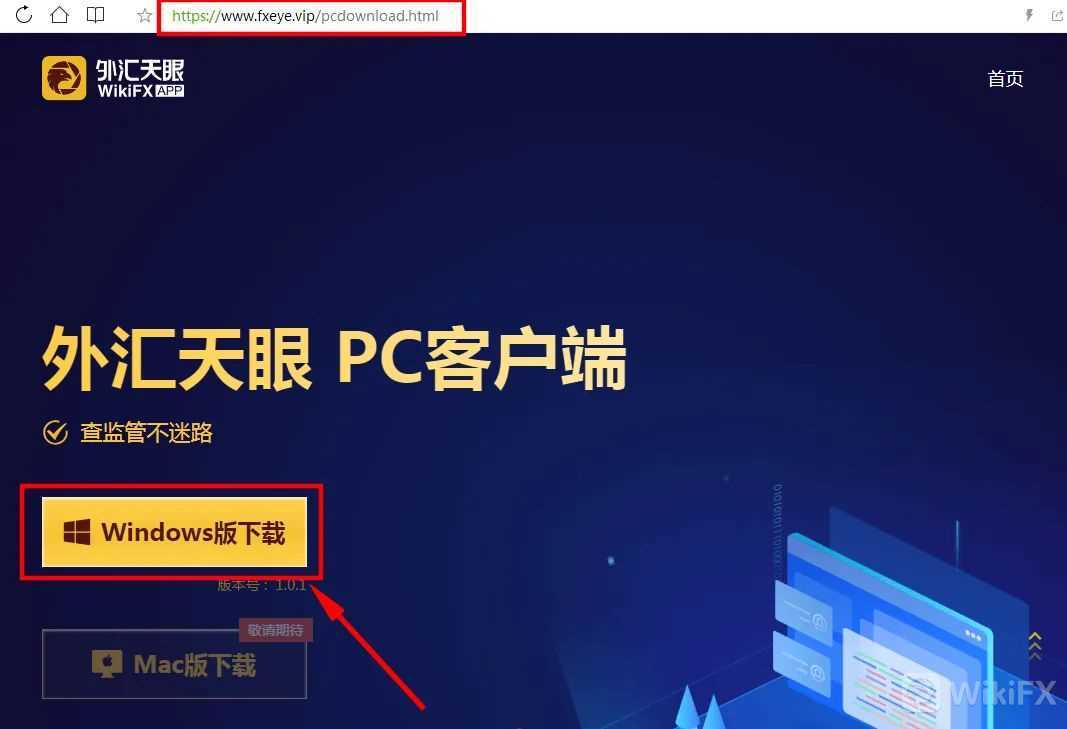 方式二:复制链接打开https://www.fxeye.vip/pcdownload.html,点击“windows版下载”。