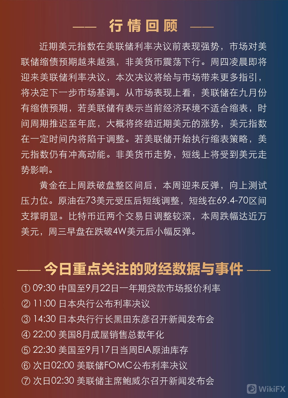 百汇:【BCR今日市场分析2021.9.22】美联储明晨引发瞩目 日央行稳定一如预期