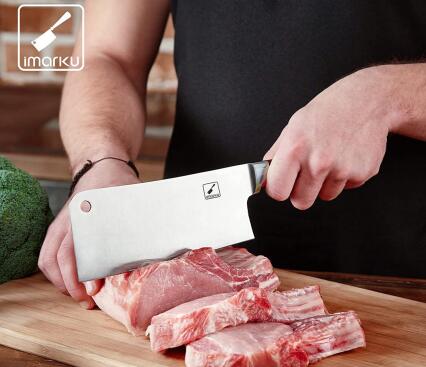 值得一提的是,imarku伊马库的刀体原材料运用了品牌特殊配方的的不锈钢,此种新型材料的特点是能使碳和铬的比例达到最佳平衡,再加以多层锻造,使厨刀的锐度、硬度与耐腐蚀性都更加优越,同时材料中的特殊金属元素,会破坏细菌的细胞膜或细胞原生质活性酶的活性,使细胞丧失分裂增殖能力而死亡,从而达到抗菌、杀菌的效果,让刀具具有主动抑制细菌滋生的能力,加强了刀具品质和使用寿命。