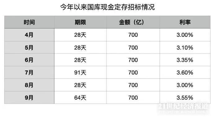 9月26日,央行网站发布的国库现金定存招标结果显示,9月26日起息的2个月期700亿元国库现金定存招标利率为3.55%。