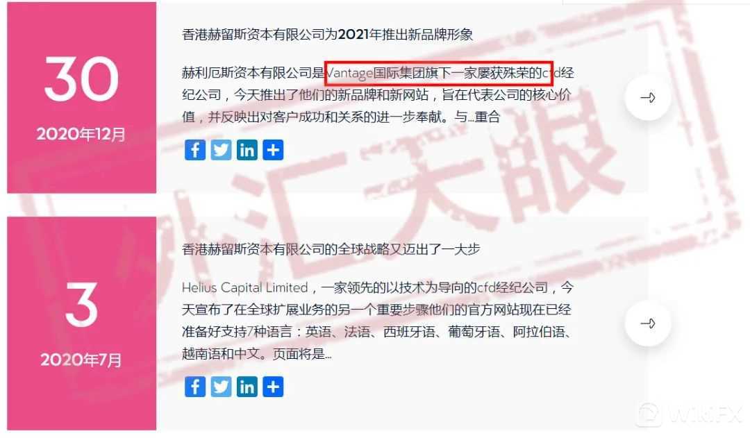 在官网的介绍中,他们宣称Helius Capital Limited.隶属于Vantage国际集团旗下的一家经纪公司,位于香港。