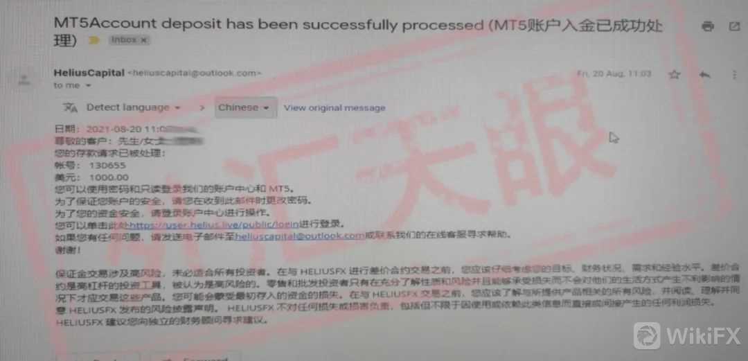 在2021年的8月19日,温女士通过网络社交结识了一名网友,并在他的推荐下前往helius capital开户,学习外汇投资交易。