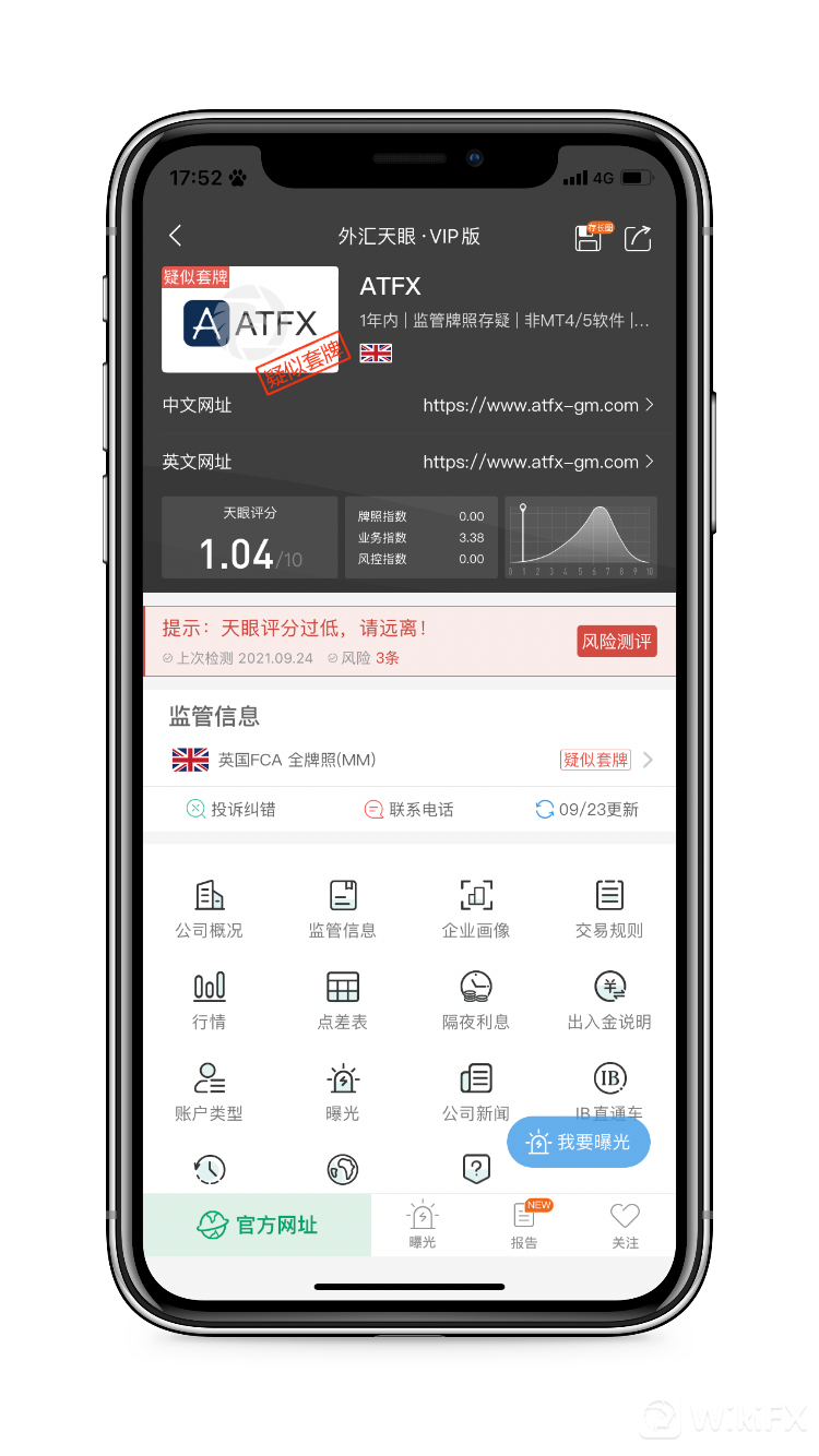 ATFX,天眼评分1.04分,其宣称持有的牌照被撤销后,当前没有任何实际有效监管,存在巨大风险,建议投资者远离。