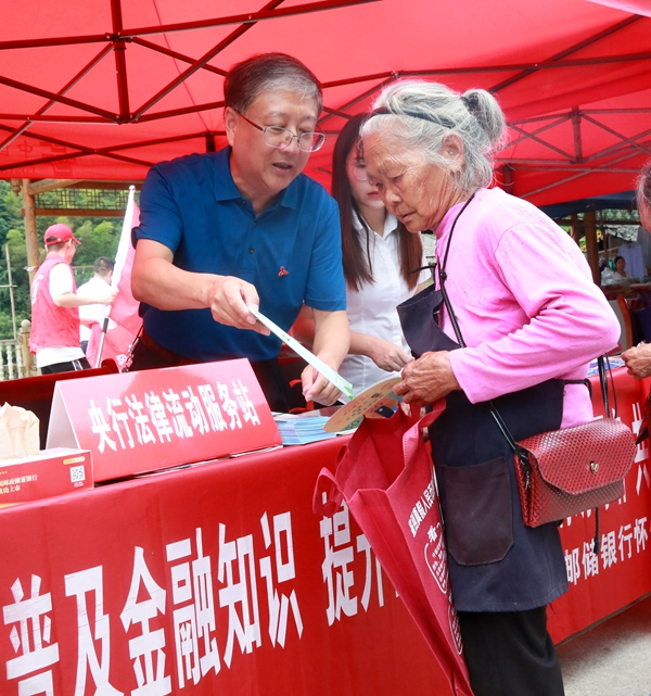 本网讯 为积极做好2021年全省“金融知识普及月、金融知识进万家、争做理性投资者、争做好网民”活动,人行湖南怀化市中支在怀化市靖州侗族苗族自治县三锹乡举行“一村一机构”农村金融教育启动仪式。本次活动以地方党政安排的金融机构乡村振兴驻村点机制为基础,在每个村明确一家金融机构县级管理单位作为该村金融教育主办机构,在全省行政村建立“一村一机构(行、社、司)”金融教育“分片包干”制度,以推动金融教育重心下沉,构建农村地区金融教育长效机制,提高农村地区居民的金融素养,助力金融服务乡村振兴。目前,该中支已组织辖内金融机构完成责任片区划分,全市286个乡(镇)的2092个行政村已被11家银行类金融机构的732个网点“认领”。图为人行怀化市中支行领导在活动现场为村民普及金融知识。(本网记者 曹平苹 通讯员唐云良 成蓉 摄)