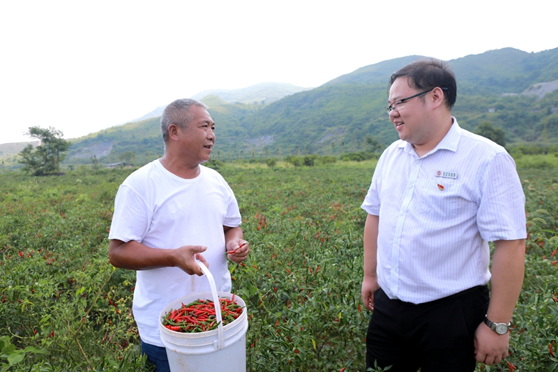 本网讯 中国银行湖南衡阳常宁支行积极支持本地特色农业产业发展。今年该行为湖南辣过瘾农业科技有限公司发放普惠金融贷款100万元,支持公司推广“基地+农户”经营模式,使附近1000多个辣椒种植户增收致富,助力乡村振兴。图为该行客户经理在辣椒种植基地了解生产情况。(本网记者 曹平苹 通讯员 林道辉 摄)