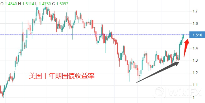 9月23日之前,美债收益率虽然在上涨,但涨幅极为缓慢,可以用“一步三回头”来形容。9月23日之后,连续5个交易日大幅上涨,自低点1.3090%上涨至今日高点1.5114%,累计0.20个百分点,可以用“一去不回头”来形容。