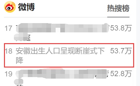 近年来,人口问题总能引发热议。29日,#安徽出生人口呈现断崖式下降#登上热搜。