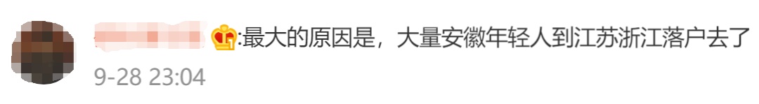 对于安徽省出生人口“呈断崖式下降趋势”,有网友分析表示,“最大的原因是,大量安徽年轻人到江苏浙江落户去了。”