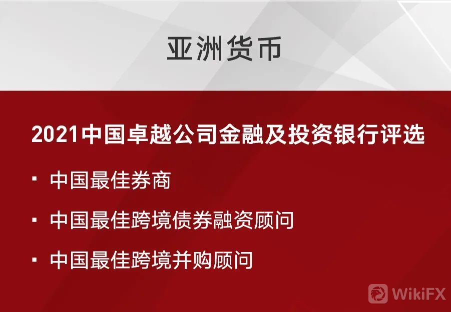 中金在《亚洲货币》截至目前的历年投资银行业务评选中都曾取得非常优异的成绩,其中包括曾2次问鼎“中国最佳投资银行”、6次摘取“中国最佳股本发行机构”奖项桂冠、以及2次荣获“中国最佳跨境并购顾问”奖项荣誉等。