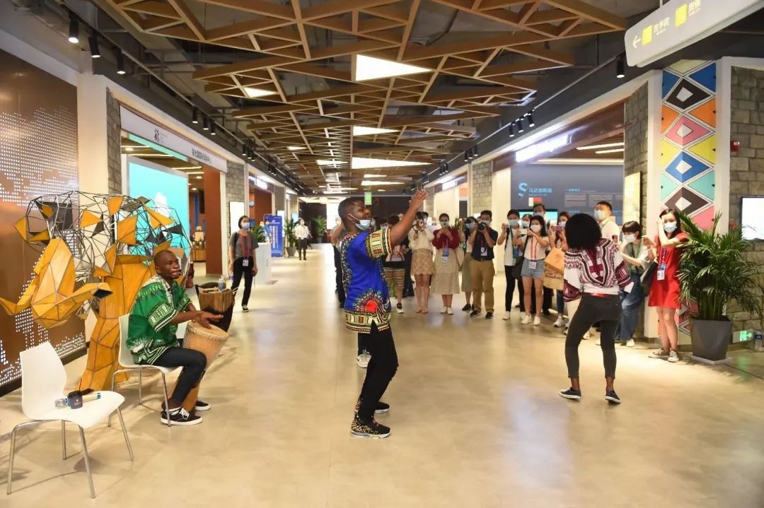 高桥中非经贸合作创新示范园的常设展馆,非洲艺术家正表演节目